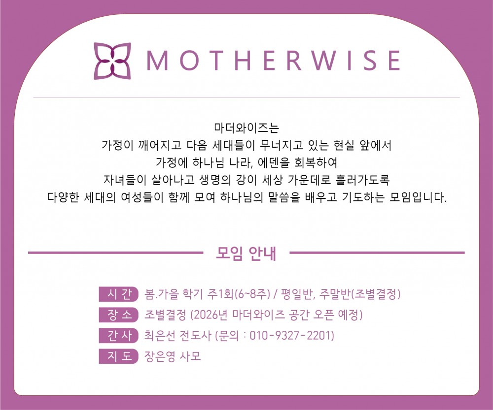 여수제일교회 마더와이즈의 디자이너! 아삭아삭여름오이 선생님! 항상 감사드립니다!